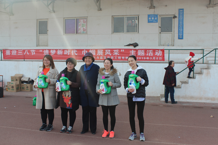 3月8日下午,大家齊聚體育場(chǎng)。公司領(lǐng)導(dǎo)馮總、惠總致辭,給全體女員工送上親切慰問(wèn)和祝福,期望她們?cè)诮窈蟮墓ぷ骱蜕钪袏^勇?tīng)?zhēng)先,巾幗不讓須眉。接下來(lái)參加了拍拍操、搶水瓶熱身活動(dòng)和陽(yáng)光齊步走、跳繩競(jìng)賽四個(gè)項(xiàng)目活動(dòng)。公司董事長(zhǎng)明總在百忙之中擠時(shí)間,報(bào)名并參與了個(gè)人跳繩比賽,使大家倍感鼓舞。特別值得一提的“陽(yáng)光齊步走”活動(dòng),恰似一幅“比學(xué)趕幫超”的工作情景再現(xiàn),將整個(gè)活動(dòng)推向了高潮。